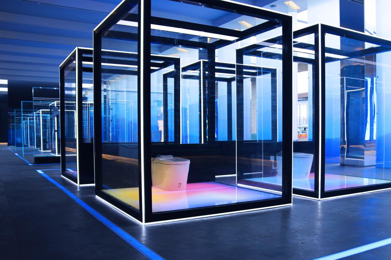 公司智慧展廳,融合產(chǎn)品陳列、產(chǎn)品演示、功能道具、企業(yè)榮譽墻等模塊